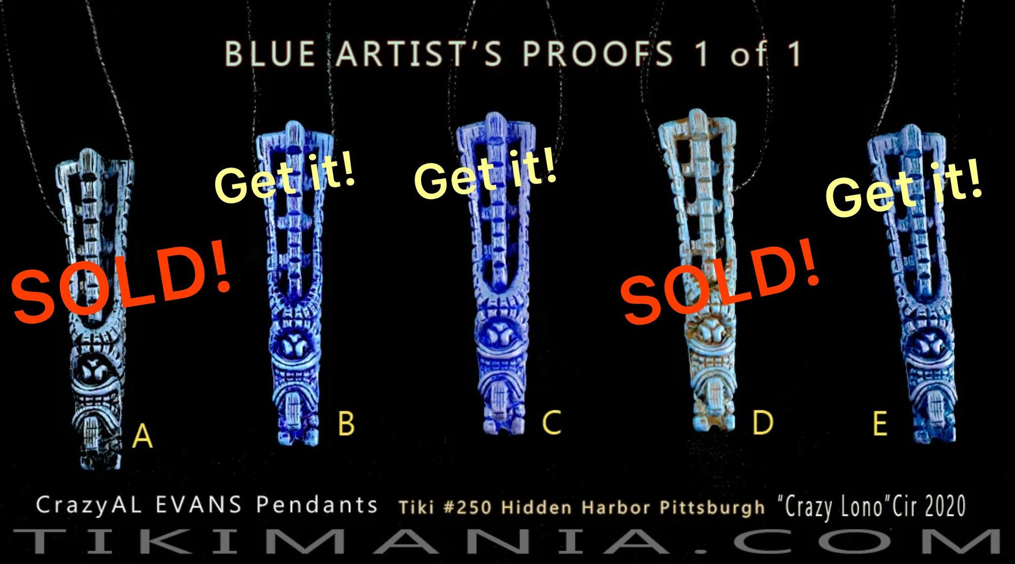Crazy Al Pendants sell in world famous Tiki Bars for $40-50